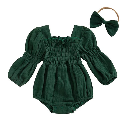 Long Sleeve Solid Vintage Baby Romper