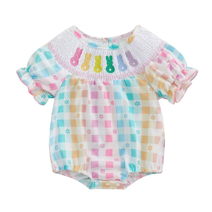 Dress your little one in charm this Easter with these adorable baby girl rompers, available in two delightful styles. Each romper features a colorful smocked neckline with playful Easter-themed embroidery, adding a festive touch. Designed with snap closures, it’s easy to put on and take off, making diaper changes a breeze. Celebrate the season in style and comfort with this must-have romper for your baby girl!
