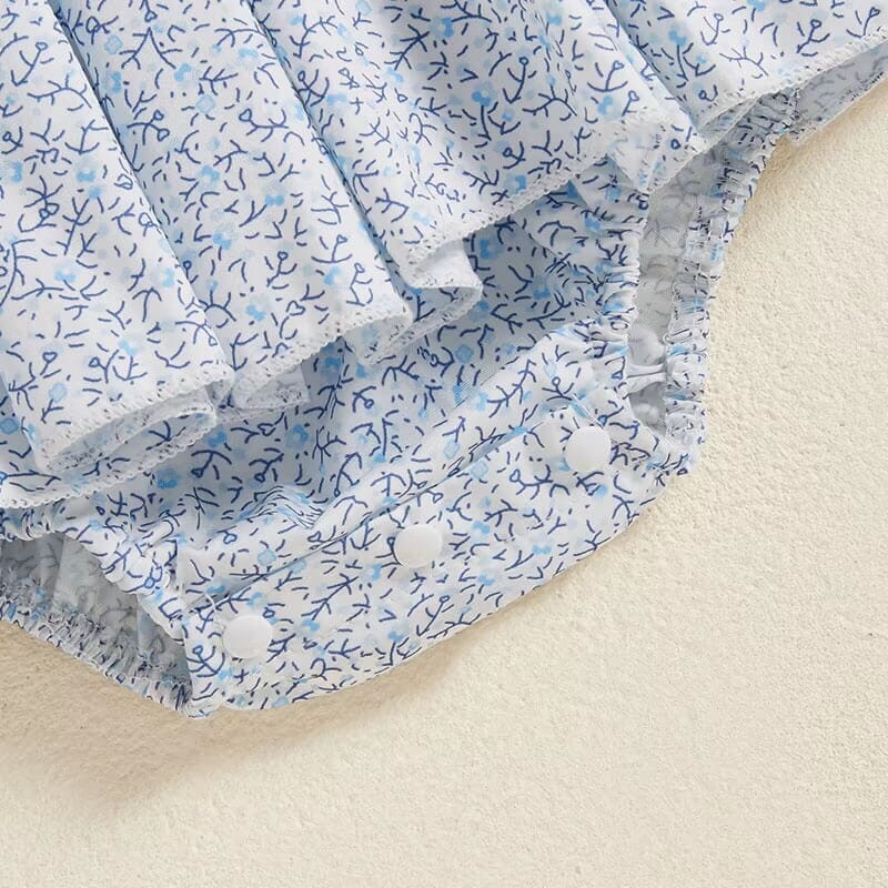This baby girl romper is a perfect blend of timeless elegance and adorable charm. Featuring a delicate floral pattern and intricate smocking with sweet bow embroidery, it’s ideal for special occasions or everyday style. Designed with a Peter Pan collar and puff sleeves, it exudes a classic and sophisticated look. The convenient snap closures make dressing and diaper changes a breeze for busy parents.