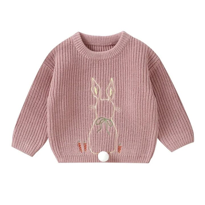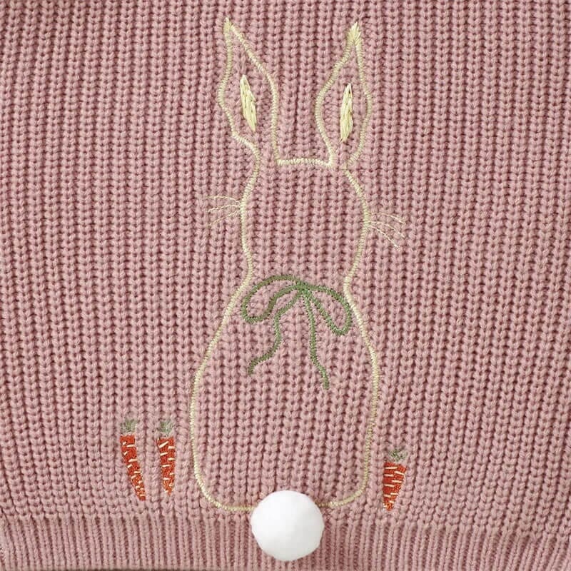 This charming little girl's sweatshirt is a heartwarming blend of cozy comfort and Easter delight, ideal for the spring season. The sweatshirt features an intricately knitted bunny on the back, offering a subtle and sweet nod to the holiday's beloved symbol. Its dusty rose hue is soft and fashionable, versatile enough to pair with any springtime outfit. Crafted from a snug, knitted fabric, this top provides warmth on cooler days while the relaxed fit allows for layering.