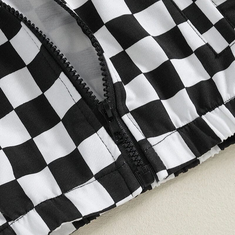 This unisex toddler jacket is the perfect blend of style and practicality for your little one. Designed with a trendy checkerboard pattern, it’s available in four vibrant colors to suit every taste. The lightweight material ensures comfort while the full zip front makes it easy to wear, ideal for layering during unpredictable weather. Whether for a casual day out or a more active setting, this jacket is a must-have addition to your toddler's wardrobe.