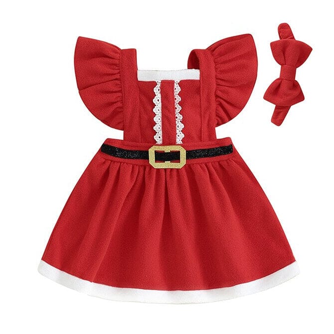 This dress is designed to capture the magic of the Christmas season with its exquisite details. The ruffled sleeves and lace accents add a touch of elegance, while the belt detail cinches the waist for a sweet and stylish look. The dress is perfect for holiday parties, family gatherings, and special occasions during this joyous time of year.