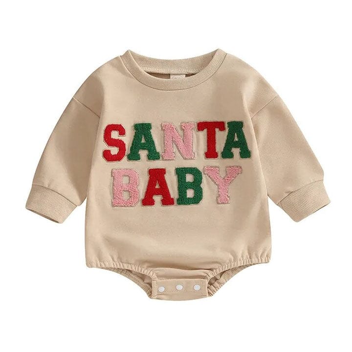 Embrace the festive joy with this enchanting long-sleeve bodysuit, perfect for the season's littlest celebrants. The centerpiece, an embroidered fluffy lettering spelling "Santa Baby," exudes both charm and tactile delight, ensuring your baby is both snug and stylish. Crafted from soft, breathable fabric, the bodysuit wraps your little one in comfort, making it ideal for holiday gatherings or cozy winter snuggles.