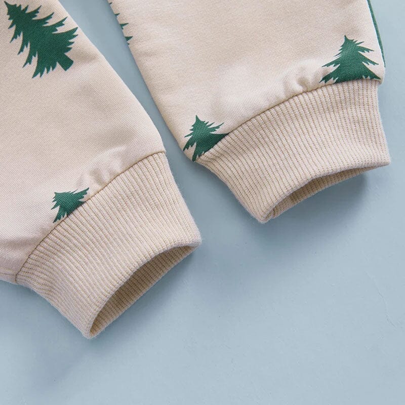 This cozy unisex baby set is adorned with a charming pine tree pattern, making it a festive choice for the holiday season. The soft, breathable fabric ensures comfort for all-day wear, ideal for both playtime and naptime. The hooded sweatshirt adds a layer of warmth, perfect for colder December days. Its adjustable drawstring pants allow for a snug, custom fit as your little one grows. This set is not only stylish but also practical, offering both comfort and holiday cheer in one adorable package.