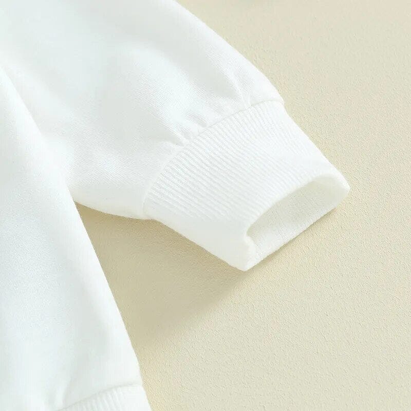 Step into the festive season with this heartwarming unisex baby outfit. The pristine white sweatshirt showcases a beautifully embroidered Christmas tree at the front, embodying the timeless charm of the holidays. Paired with solid dark green pants, the combination offers a harmonious and classic festive look.