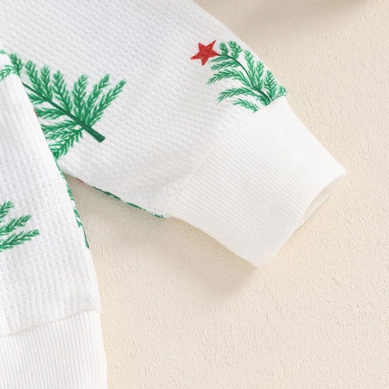 This charming unisex toddler set is the perfect outfit for the holiday season. Featuring a delightful Christmas tree print with red star accents, this set is both festive and fun. The set includes a long-sleeve top and matching pants, designed to keep your toddler warm and stylish throughout the winter months. Celebrate Christmas in comfort and style with this adorable, festive outfit that’s sure to bring holiday cheer.