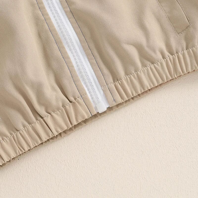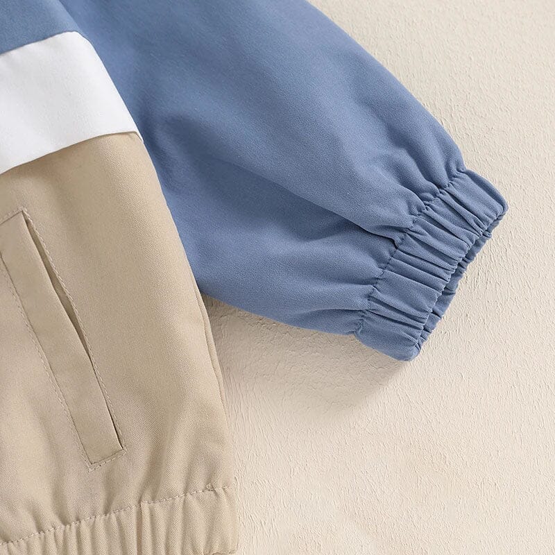 This stylish unisex toddler jacket is perfect for keeping your little one cozy and fashionable during cooler days. The jacket features a color-blocked design in soft, neutral tones, making it versatile and easy to pair with other pieces. With a practical hood and full front zipper, it offers both warmth and convenience for on-the-go families. Whether for a walk in the park or a casual day out, this jacket is a must-have for your toddler’s wardrobe.
