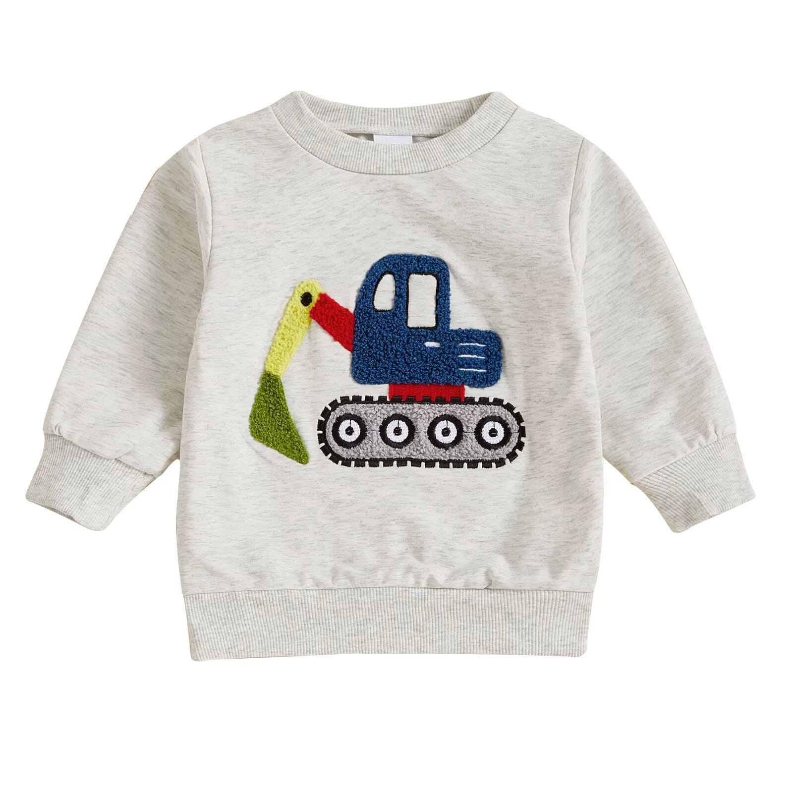 This adorable toddler sweatshirt is perfect for little construction enthusiasts! Featuring a playful excavator embroidery in vibrant colors, it adds a fun and dynamic touch to your child's wardrobe. Made from soft, breathable fabric, this sweatshirt keeps your little one warm and cozy, whether they're playing indoors or exploring outdoors.