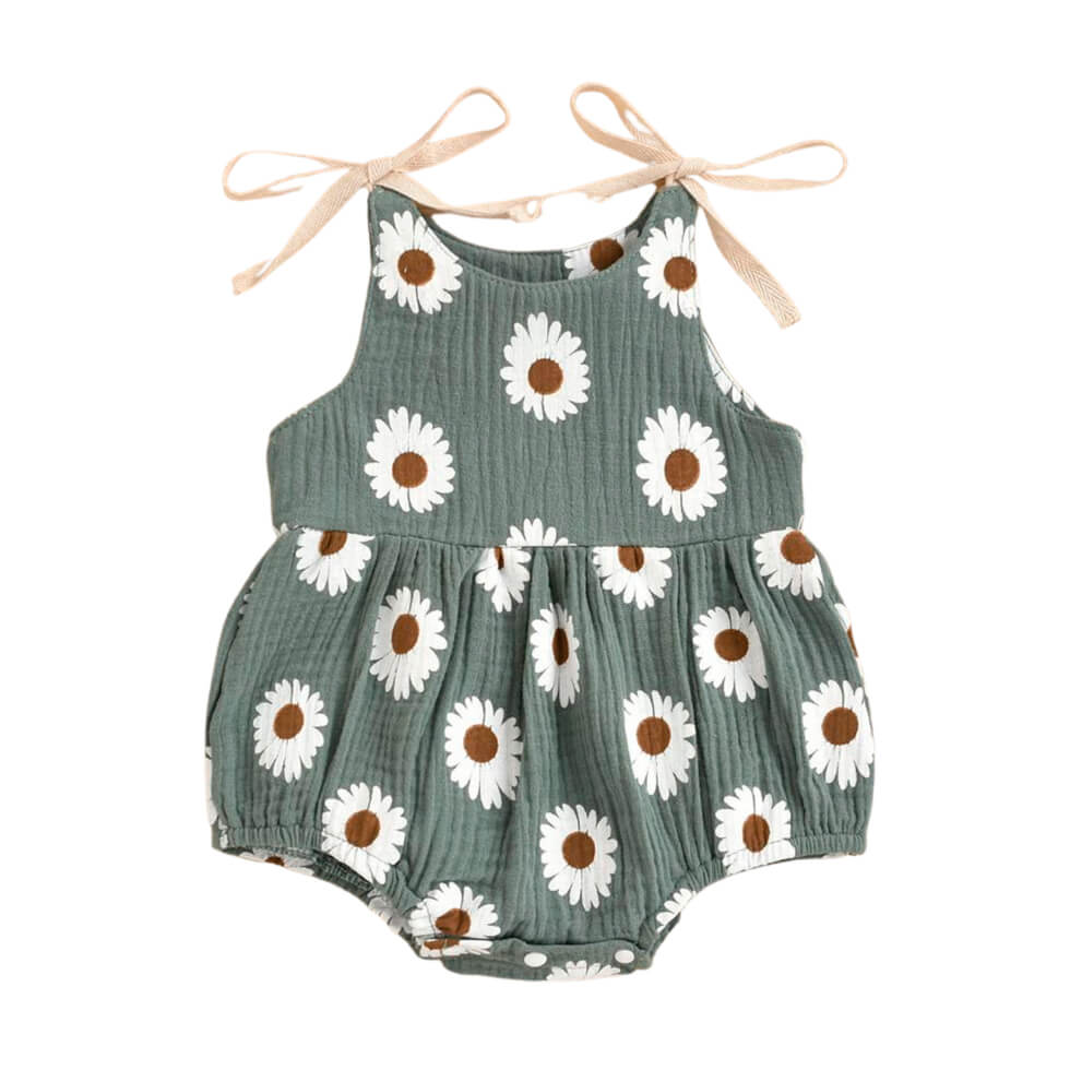 This adorable baby girl romper is perfect for your little flower. The daisy print is sure to bring a smile to everyone's face, while the cute straps add a touch of style. Made from soft, breathable material, it's comfortable for all-day wear.