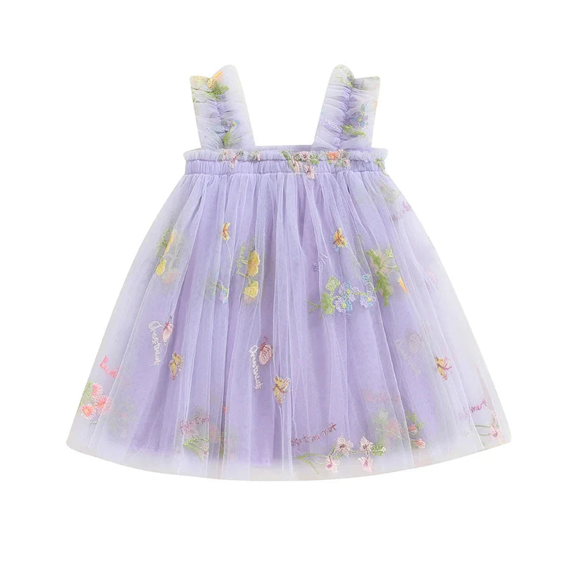 This toddler girl dress is a vibrant and playful garment, perfect for any special occasion. Available in a range of cheerful colors, each dress is adorned with delicate floral embroidery that stands out beautifully against the tulle fabric. The simple A-line design and comfortable fit make it an ideal choice for everyday wear. Whether she's attending a party, a family gathering, or simply playing at home, this dress is a great way for your little one to wear her style with pride and elegance.