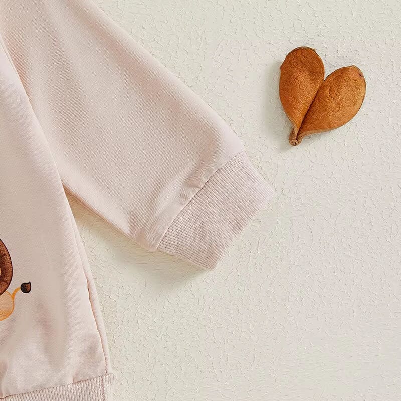 This delightful unisex baby set, available in soft white and gentle blush tones, features charming jungle animal prints, perfect for celebrating your little one's first birthday. The set includes a comfortable long-sleeve top adorned with playful giraffes, lions, and monkeys around a large, friendly "1" to mark your baby’s milestone. Matching joggers in a complementary sage green finish the ensemble, ensuring your baby stays cozy and stylish.