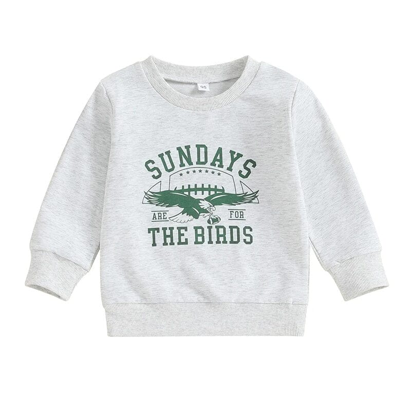 This cozy unisex toddler sweatshirt is the perfect addition to any little Philadelphia Eagles fan's wardrobe, available in subtle cream and classic gray options. Both colors feature bold "Sunday's are for the Birds" and "Bird Gang" graphics on each side, celebrating the team with iconic Eagles imagery and spirited text. Whether for casual wear or cheering on the Eagles, this sweatshirt offers both style and team pride for the smallest of fans.