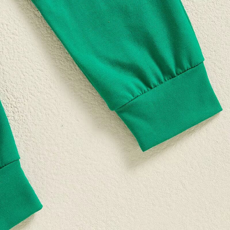 Get your little one ready for St. Patrick's Day with this festive and fun boy's set. The cozy sweatshirt features a playful "I'm A Wee Bit Irish" design with a shamrock, perfect for celebrating Irish pride. Paired with vibrant green pants, this outfit is both stylish and comfortable for all-day wear. Crafted from soft, breathable materials, this set is perfect for festive events or casual outings while adding a touch of Irish charm to the day.