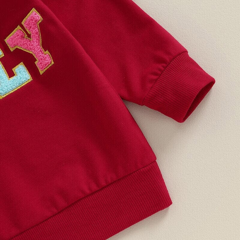 Get ready to embrace the holiday spirit with this Christmas sweatshirt featuring the fluffy pattern lettering "Jolly". This sweatshirt is the epitome of coziness and merriment, perfect for the festive season. The soft and warm fabric ensures your little one stays comfortable while spreading holiday cheer. Whether you're heading to a family gathering or simply enjoying a cozy day at home, this sweatshirt is an ideal choice to keep your toddler snug and stylish.