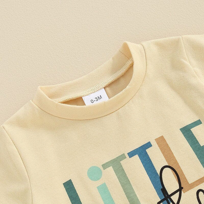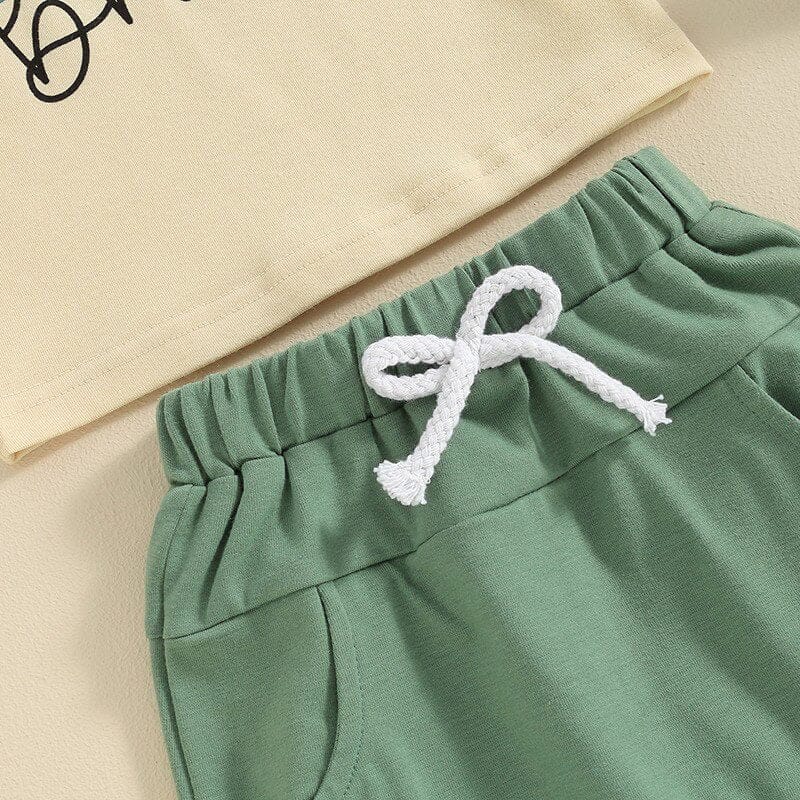 This charming baby boy set is perfect for the newest addition to your family. Featuring a soft, beige T-shirt with the words "little brother" playfully printed across the front, it speaks to the special bond between siblings. The set is complemented by comfortable, green jogger pants with a white drawstring, providing both style and ease of movement for your little one. Plus, with a matching set available for the big brother, it's an adorable way for your boys to be in sync at family outings or in those memorable family photos.