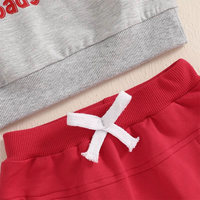 Celebrate the season of love with our "Loads of Love" toddler boy set, perfect for making Valentine's Day both memorable and cozy. This adorable set features a light gray sweatshirt with a fun, love-themed print showcasing a tractor and hearts, signaling that your little one is ready to spread love wherever he goes. The vibrant red pants complement the sweatshirt beautifully, adding a pop of festive color that's ideal for Valentine's Day photoshoots or parties.
