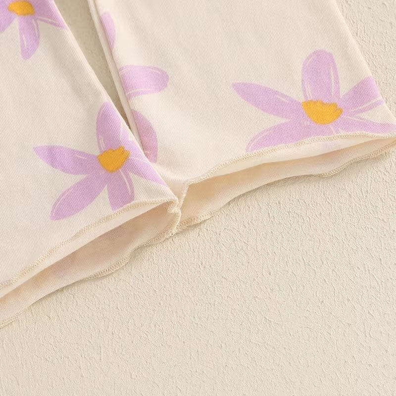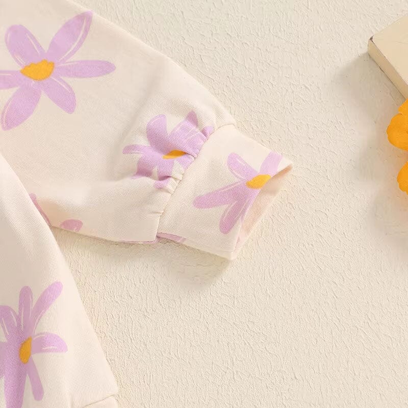 Brighten your little girl's wardrobe with this charming toddler set, adorned with delightful purple daisy prints that evoke the freshness of spring. The cozy sweatshirt paired with matching leggings offers a comfortable fit that's perfect for playtime or relaxing at home.The pastel color palette adds a touch of whimsy and is versatile enough for layering with other pieces. This set is not only stylish but also practical, making it an excellent choice for daily wear.