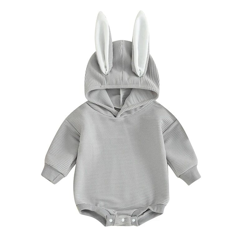 Dress your little one in the spirit of Easter with this adorable unisex bunny-eared bodysuit. Available in a soft palette of springtime hues—cream, blush pink, and serene gray—each bodysuit is finished with a cozy hood adorned with the cutest bunny ears. The ribbed texture of the fabric adds a touch of sophistication, while the stretchy, cotton-rich blend ensures comfort throughout the day. These bodysuits are as practical as they are endearing, and a must-have in any baby's wardrobe.