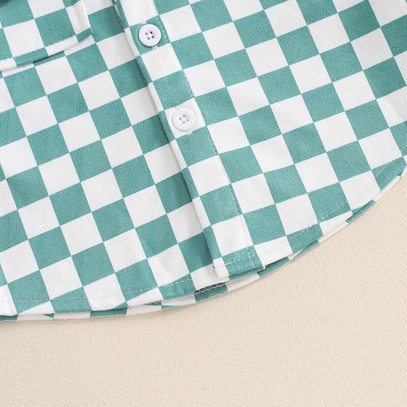This trendy checkered jacket is a must-have for your toddler's wardrobe. Crafted from soft and durable fabric, it provides both warmth and style during cooler days. The jacket features a classic button-up front and two front pockets, perfect for storing little treasures. Its versatile design makes it easy to layer over any outfit, adding a touch of flair to your little one's look.