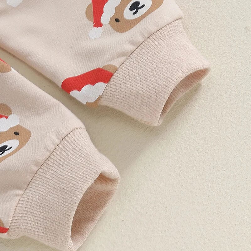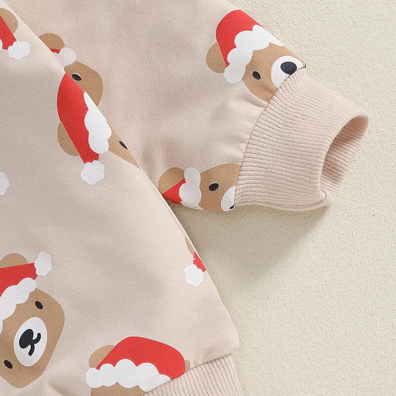This adorable little boy's set is the perfect outfit for Christmas celebrations. Featuring a charming print of teddy bears in Santa hats, this set brings festive cheer to your child's holiday wardrobe. The soft and cozy fabric ensures comfort during all the seasonal festivities, whether your little one is playing, opening presents, or posing for family photos. Make this holiday season extra special with a cute and comfortable outfit that captures the magic of Christmas.