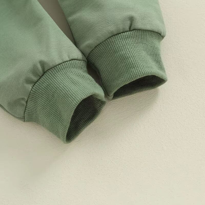 Get your little one ready for the holidays with this charming boy's Christmas set. The cozy hooded top features an adorable red car and pine tree print, perfect for the festive season. The matching olive green pants are designed for comfort, with a relaxed fit and a drawstring waist for easy adjustments. Made from soft and breathable fabric, this outfit ensures your boy stays comfortable whether he’s playing or posing for holiday photos. It's the ideal ensemble for capturing joyful moments during Christmas celebrations.