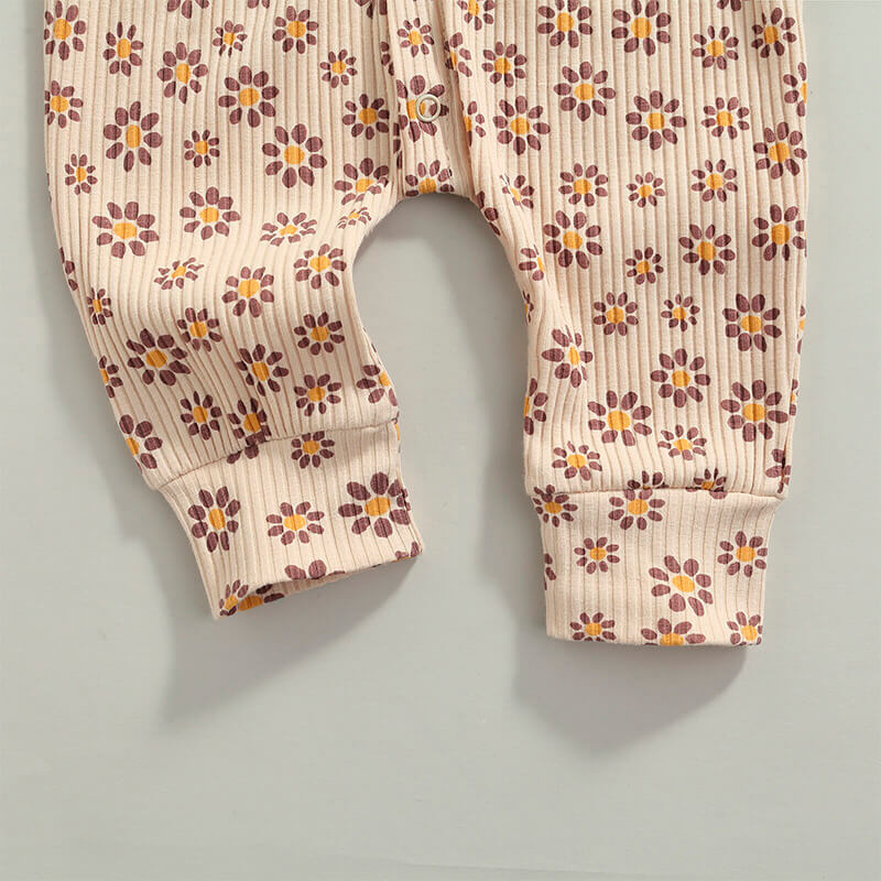 This jumpsuit features a lovely floral print, with long sleeves to keep your baby warm and cozy. Made from soft and breathable materials, this jumpsuit is perfect for cooler weather or any occasion. The snap closure ensures easy diaper changes, while the cute and girly design is sure to make your little one stand out.