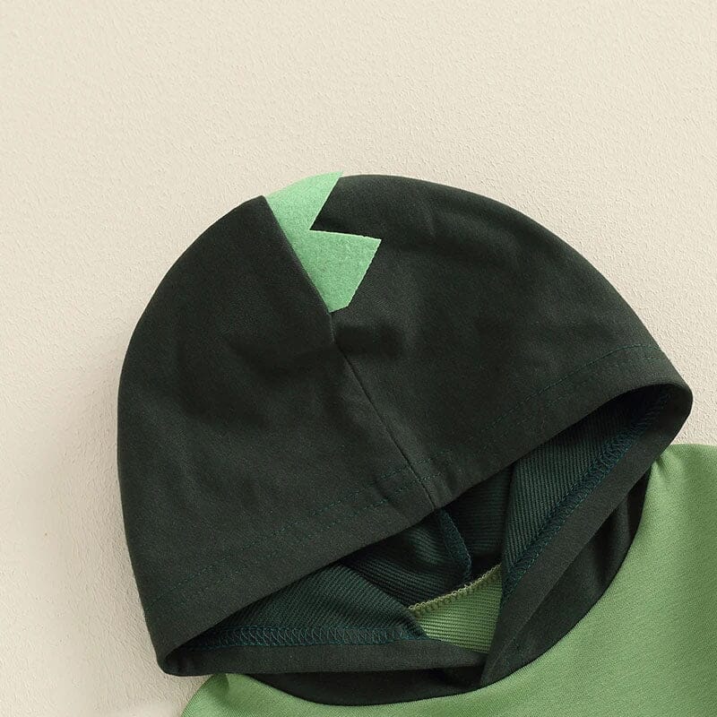 Dress your toddler in this adorable dinosaur-themed set, available in two vibrant colors: green and blue. This set includes a cozy hoodie with playful spikes along the hood and sleeves, adding a fun and imaginative touch to their outfit. The matching pants feature a comfortable fit and additional spikes along the sides, making your little one look like a cute little dino. Perfect for playtime, outings, or just lounging at home, this dinosaur set is both stylish and practical for any occasion.