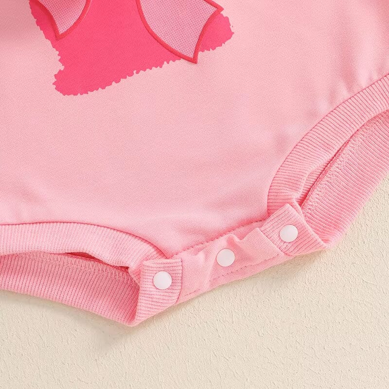 This adorable baby girl romper is perfect for celebrating Easter in style and comfort! Featuring a sweet bunny-themed design with a playful pom-pom tail and ruffled sleeves, it adds an extra touch of charm. Available in two delightful colors, this romper is ideal for Easter egg hunts, family gatherings, or springtime photoshoots. Complete the look with the matching bow headband for a picture-perfect outfit!