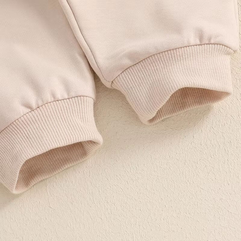 Hop into spring with this delightful little boy's set, perfect for Easter celebrations. Available in soothing pastel shades of blue and beige, each set features a charming bunny embroidery on the sweatshirt, complete with fluffy tail detail and playful carrot motifs. The soft, stretchy fabric ensures your little one stays comfortable, whether hunting for Easter eggs or enjoying family gatherings. The pants boast a snug fit with a flexible waistband, making them ideal for all-day wear.