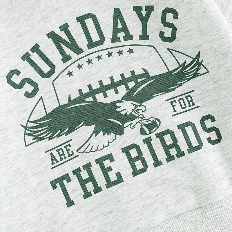 Get your little one ready for game day with this adorable unisex baby set, perfect for the tiniest Philadelphia Eagles fan. The cozy sweatshirt proudly displays "Sundays Are For The Birds" along with a football and eagle graphic, ensuring your baby is dressed in true team spirit. Paired with matching green jogger pants, this outfit offers both comfort and style for any occasion. Whether you're watching the game at home or taking your baby out, this set is the perfect way to show off your family's love for the Eagles.
