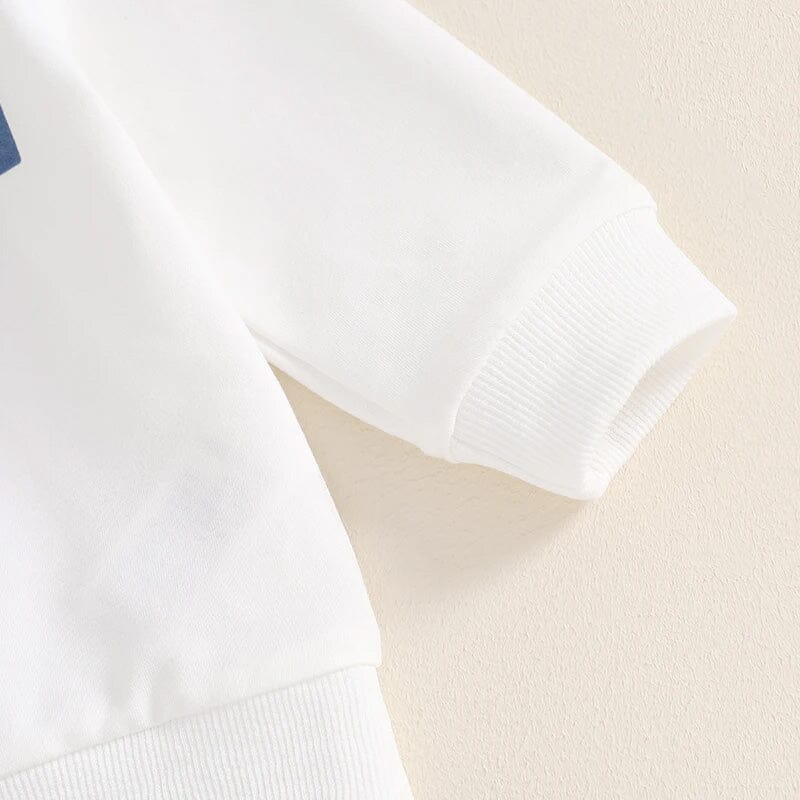 Get your little one ready for the big game with this "Game Day" outfit set, perfect for all future sports stars. The cozy white sweatshirt features bold lettering that makes a statement, while the matching blue pants are adorned with playful football prints, ensuring your boy is the cutest fan around. Made from soft, breathable fabric, this set is designed for all-day comfort, whether cheering on the team or just enjoying some downtime.