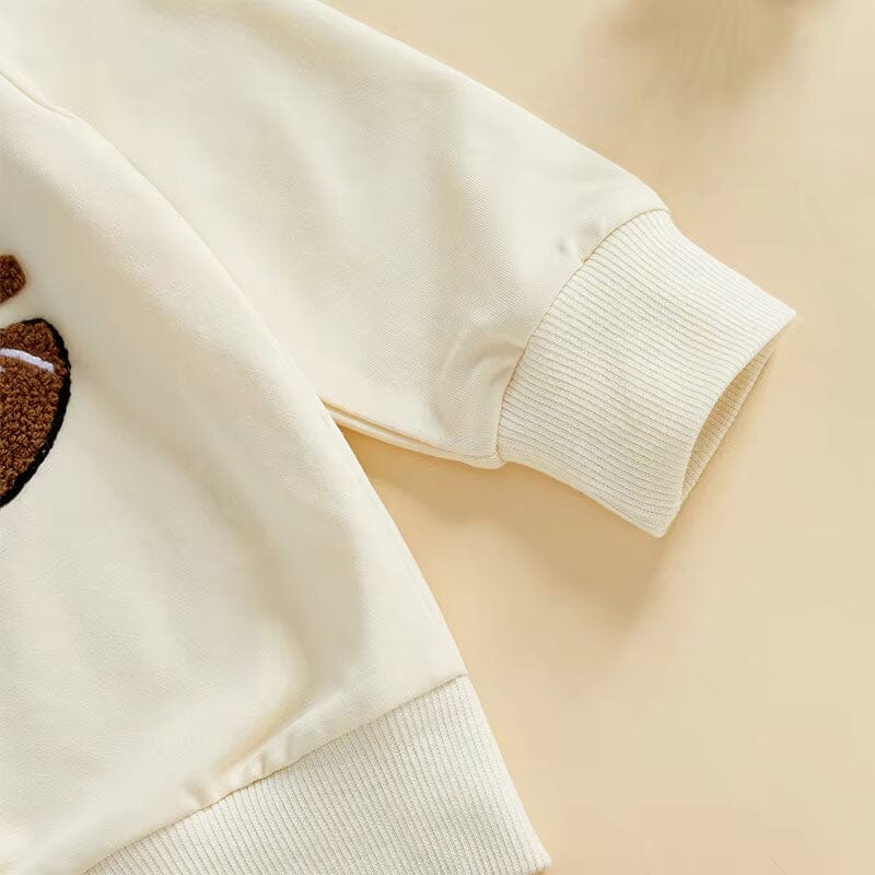 This charming toddler girl set is a touchdown for any little football fan, especially on game day! The cream-colored sweatshirt is adorned with sparkling sequins spelling out "GAME DAY" alongside a football, making it a stylish and spirited choice. Paired with a flouncy skirt featuring an adorable football print, this outfit is perfect for cheering from the sidelines or romping around during halftime. Ideal for game day gatherings or just a fun day out, this set will have your little one looking like the cutest fan in the crowd!