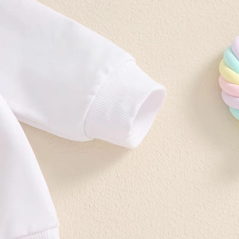 Celebrate the joy of having a little sister with this vibrant and stylish baby girl set. The set features a cozy white sweatshirt with a bold "Little Sister" print in bright pink, making it a lovely statement piece. The matching pink joggers are both comfortable and fashionable, with an adjustable drawstring waist for a perfect fit. Ideal for family outings or just lounging at home, this set combines comfort with cute style.