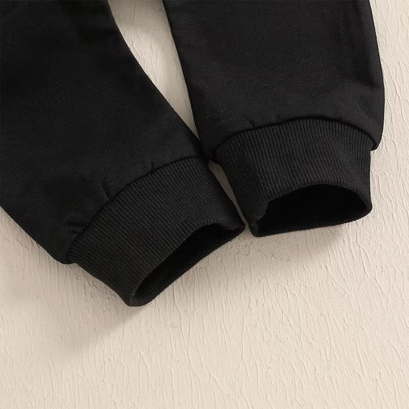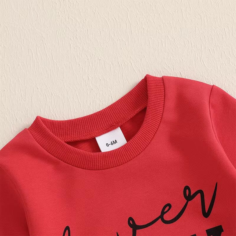 This stylish little boy set, perfect for St. Valentine's Day, features a vibrant red sweatshirt with a playful "Lover Boy" print that's sure to catch the eye. Paired with contrasting black joggers, the outfit offers both comfort and style with its soft, breathable fabric and snug fit. Whether for a Valentine's Day party or just for a fun day out, this set makes dressing up exciting and comfortable.