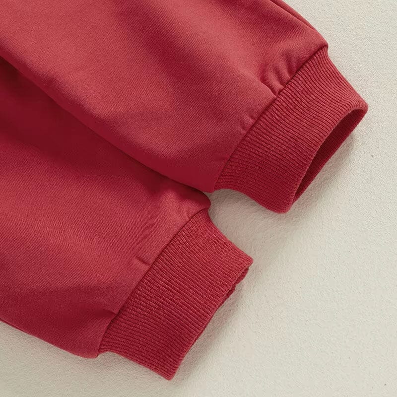 Capture the joy of the holiday season with this festive little boy's set, perfect for Christmas celebrations. The set features a comfortable gray sweatshirt with playful "Ho Ho Ho, Merry Vibes, Fa La La" lettering, capturing the spirit of the season in every detail. Paired with vibrant red pants, this outfit is both stylish and functional, ensuring your little one stays cozy and cheerful throughout the festivities.