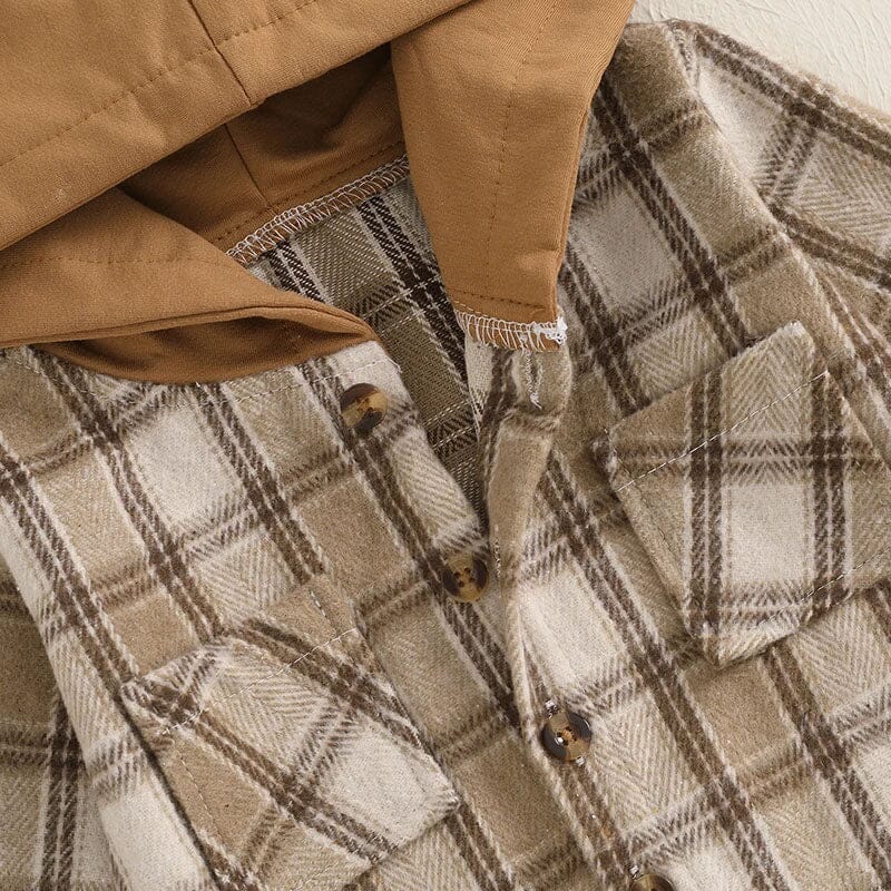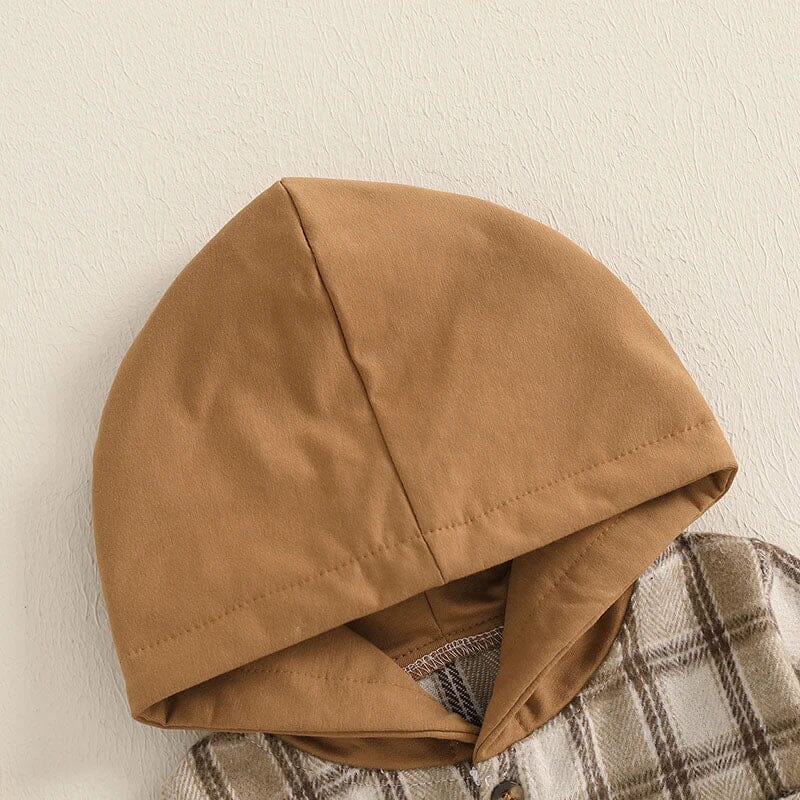 Long Sleeve Plaid Hooded Baby Shirt