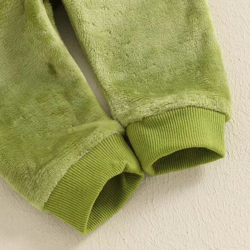 Step into the holiday spirit with this enchanting Grinch-inspired baby set, designed to add a splash of fun to your little one's wardrobe. The set includes a soft, moss green top with playful faux fur details around the neckline, evoking the cheeky charm of the Grinch himself. Matching pants in the same vibrant green offer comfort and style, making it perfect for seasonal photoshoots or family gatherings.