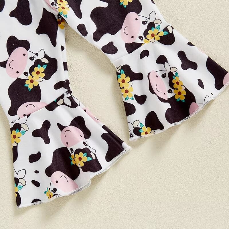 Dress your little girl in our adorable 'Mama is My Bestie' set, a perfect ensemble for showcasing her sweet bond with mom. This set features a soft, pink sweatshirt adorned with the loving phrase and a cute cow graphic, making it both heartwarming and stylish. The coordinating pants are patterned with a playful cow and floral print on a white background, adding a fun touch to the outfit.
