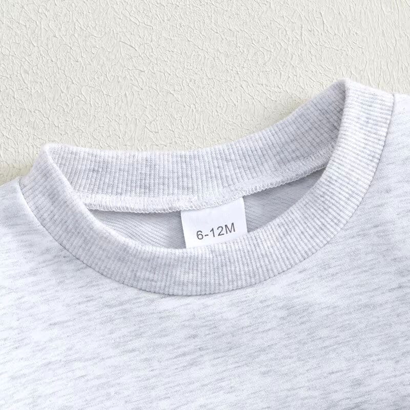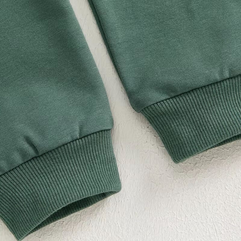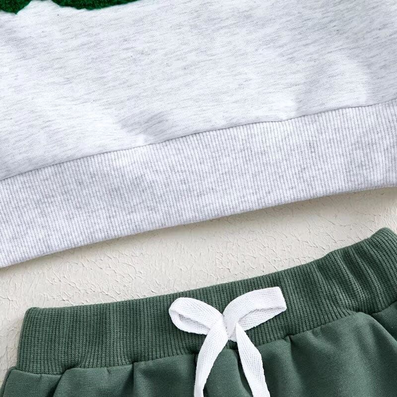 Celebrate the festive season in style with this charming little boy's set, ideal for Christmas festivities. The cozy grey sweatshirt features a playful "Merry Christmas" embroidery, complete with festive holly and berries, making it both adorable and seasonal. Paired with contrasting deep green joggers, this set combines comfort and holiday spirit effortlessly. Perfect for holiday photos or family gatherings, this set will keep your little one comfortable and cute throughout the holiday cheer.