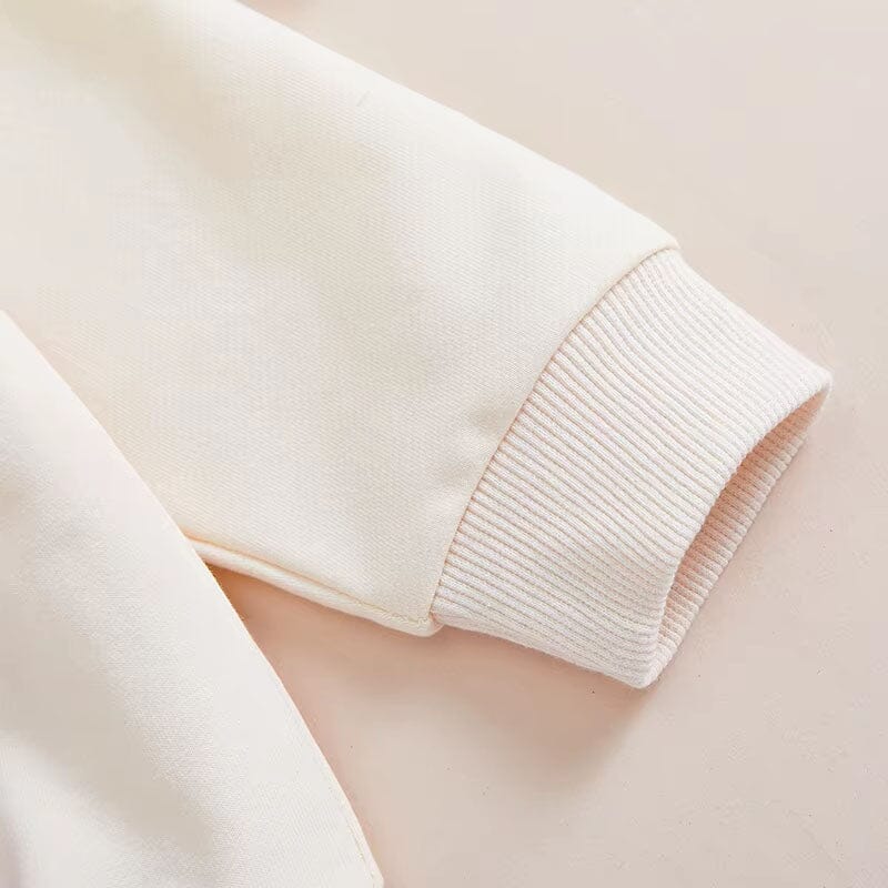 This charming little boy set is perfect for celebrating St. Valentine’s Day in style! The cream-colored sweatshirt features a playful “Mr. Steal Your Heart” design in bold red lettering, adding a festive touch to the look. Paired with vibrant red jogger-style pants that include a comfy elastic waistband and functional drawstring, this outfit is both adorable and practical. Ideal for Valentine’s Day parties, family photos, or festive outings, this set is sure to make your little charmer the star of the day!
