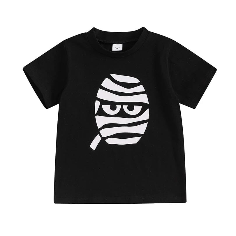 This striking unisex toddler tee is a Halloween essential, featuring a bold mummy-inspired graphic that's both spooky and stylish. Crafted from soft, breathable fabric, it ensures your little one stays comfortable while trick-or-treating or enjoying Halloween festivities. The classic black color provides a versatile backdrop that makes the white mummy design pop, offering a playful yet eerie touch. Perfect for pairing with jeans or festive leggings, this tee is sure to make your toddler the cutest ghoul on the block!