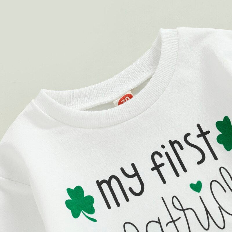 Get your baby boy ready for St. Patrick's Day with this adorable set includes a cute sweatshirt featuring a playful shamrock design and the words "My First St. Patrick's Day". The matching green pants complete the festive look, making it the perfect outfit for your baby's first St. Patrick's Day celebration.