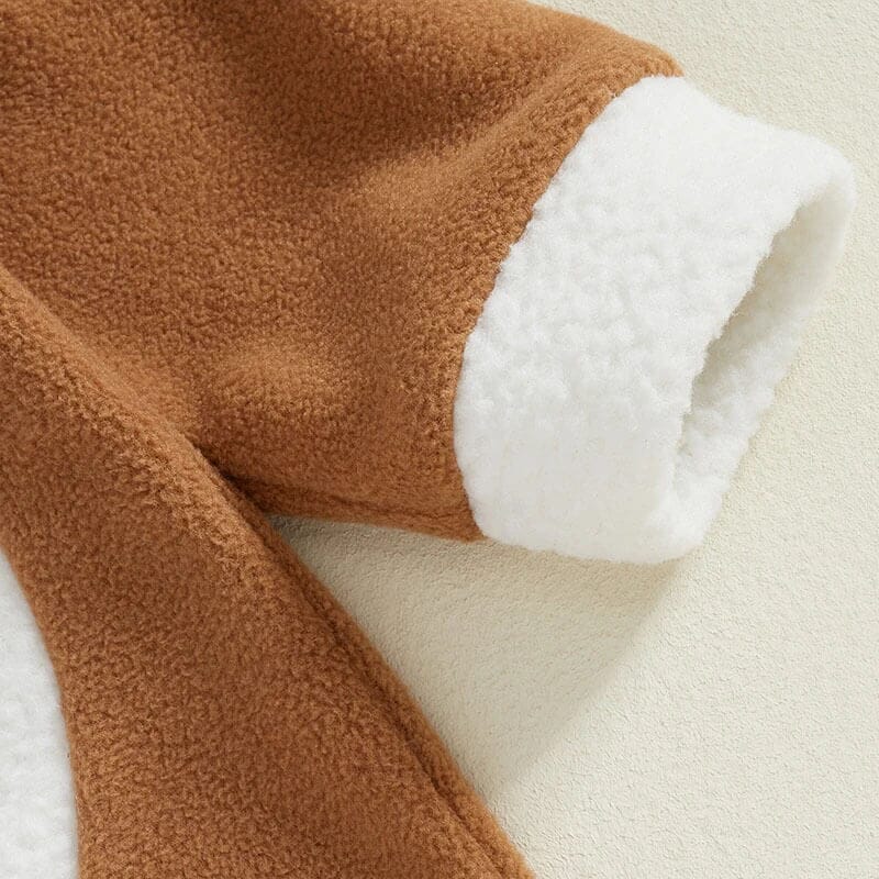 Dress up your little one in this adorable unisex reindeer jumpsuit, perfect for the Christmas season. Crafted from soft and warm material, it ensures your baby stays cozy during the chilly winter festivities. The charming design features a cute reindeer face with a red nose and antlers on the hood, adding a touch of festive cheer. Convenient zipper closure makes dressing easy, while the footed design keeps tiny toes warm. This jumpsuit is ideal for holiday photos, Christmas morning, or as a sweet outfit for any of your seasonal gatherings.