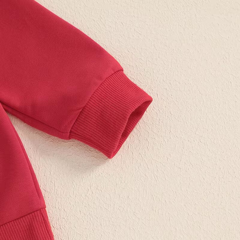 This spirited "Rule Breaker, Heart Taker" sweatshirt is a charming pick for any little one this Valentine's Day. Its vibrant red hue and bold black lettering make a playful statement, perfect for the season of love. Designed to be unisex, this sweatshirt is a great choice for any child ready to take on the day with a little extra heart.