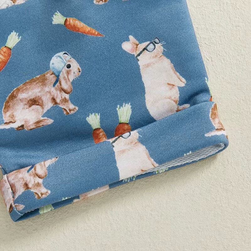 Get your little one ready for Easter fun with this adorable unisex baby set, available in two delightful colors. Featuring a playful bunny design on the top and matching shorts with cute bunny and carrot patterns, this set is perfect for holiday celebrations. Celebrate Easter in style and comfort with this charming outfit that’s perfect for photos, playtime, or gifting!