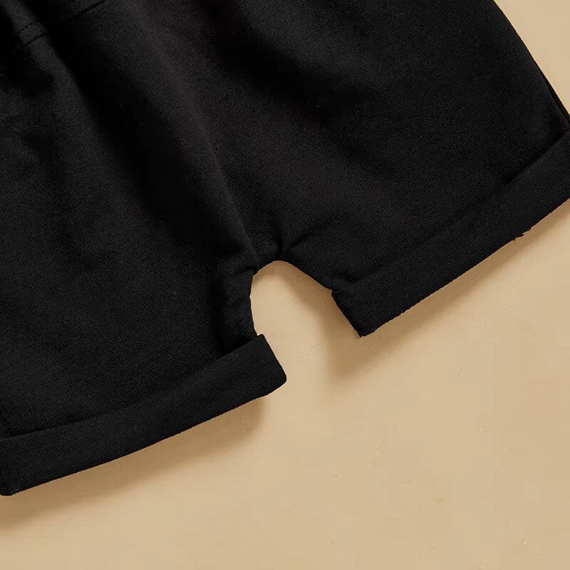 Let your little wild one show off their personality with this adorable and playful toddler boy set. Featuring a soft beige short-sleeve tee with a fun "Cute but Feral" raccoon print, this outfit is perfect for adventurous kids. The matching black shorts with an elastic waistband and a stylish drawstring offer a comfortable fit for all-day play. Whether it's a playdate, park visit, or just everyday fun, this outfit is a must-have for your little rascal!