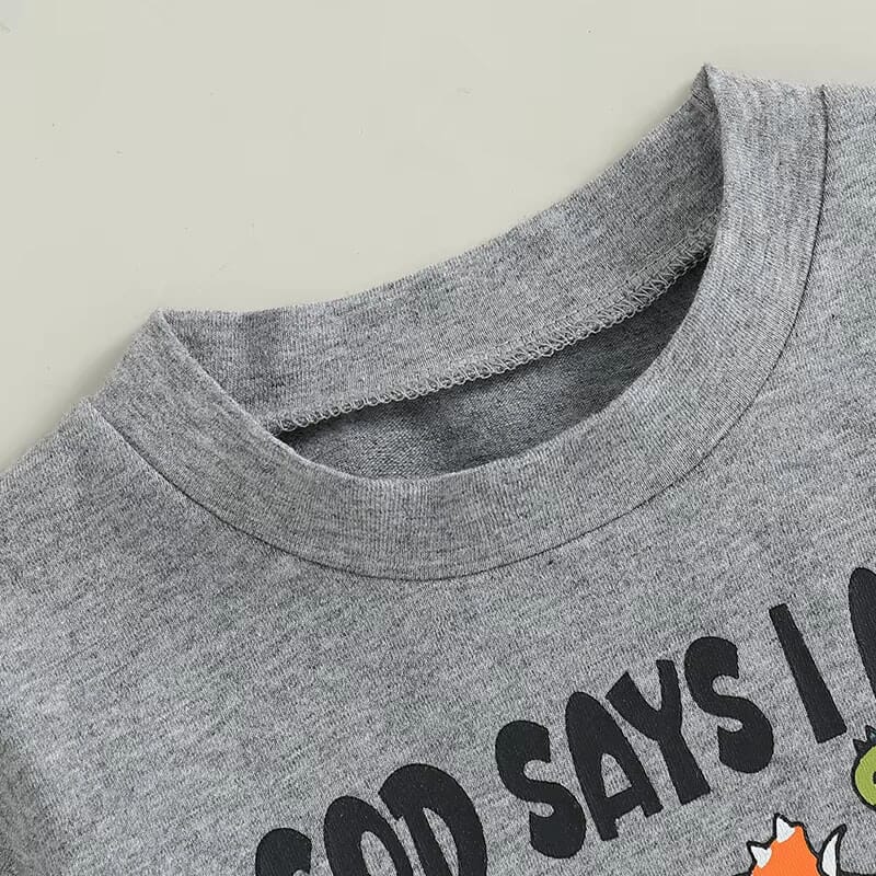 This adorable little boy set is perfect for active kids who love dinosaurs and positive affirmations. Featuring a fun "God Says I Am..." print with colorful dino graphics, it brings both style and inspiration to your little one's wardrobe. Functional side pockets add practicality, making it great for playdates, casual outings, or everyday wear. Available in two color options, this outfit is a must-have for any little adventurer!