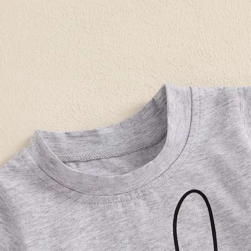 Get your little one ready for Easter in this trendy and playful toddler boy set, available in two stylish color options. The short-sleeve gray tee features a cool bunny wearing sunglasses with the fun "EGGSTRA" print, adding a touch of humor to your child's holiday outfit. Paired with comfy, relaxed-fit joggers in coordinating tones, this set is designed for all-day play and festive fun. Perfect for Easter gatherings, photo ops, or everyday wear, this outfit is both adorable and practical!