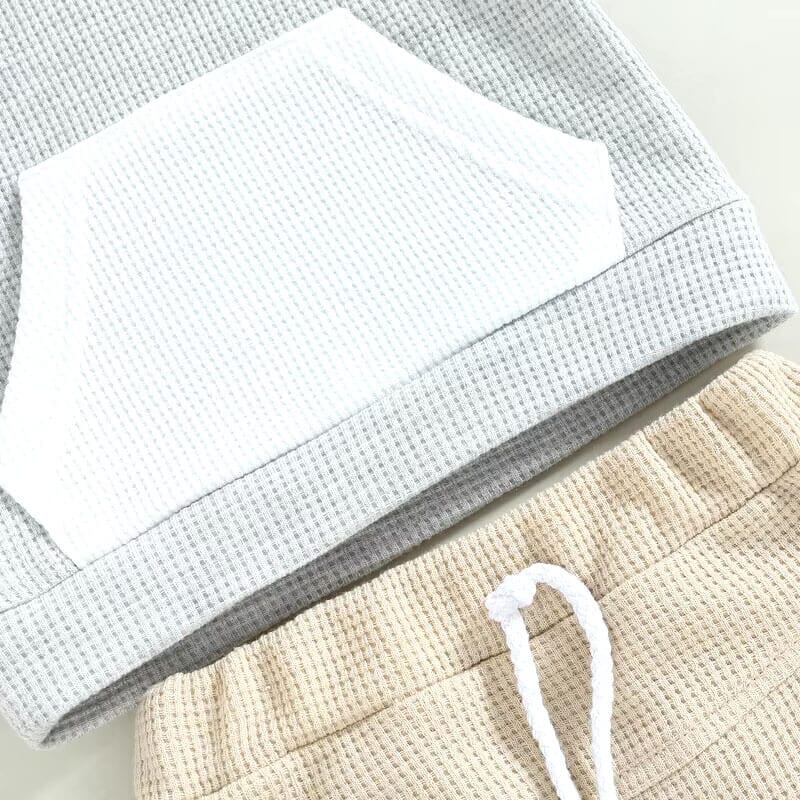 Short Sleeve Waffle Hooded Baby Set