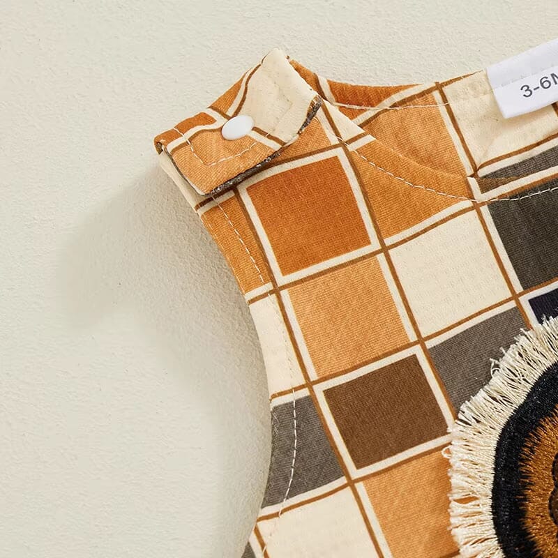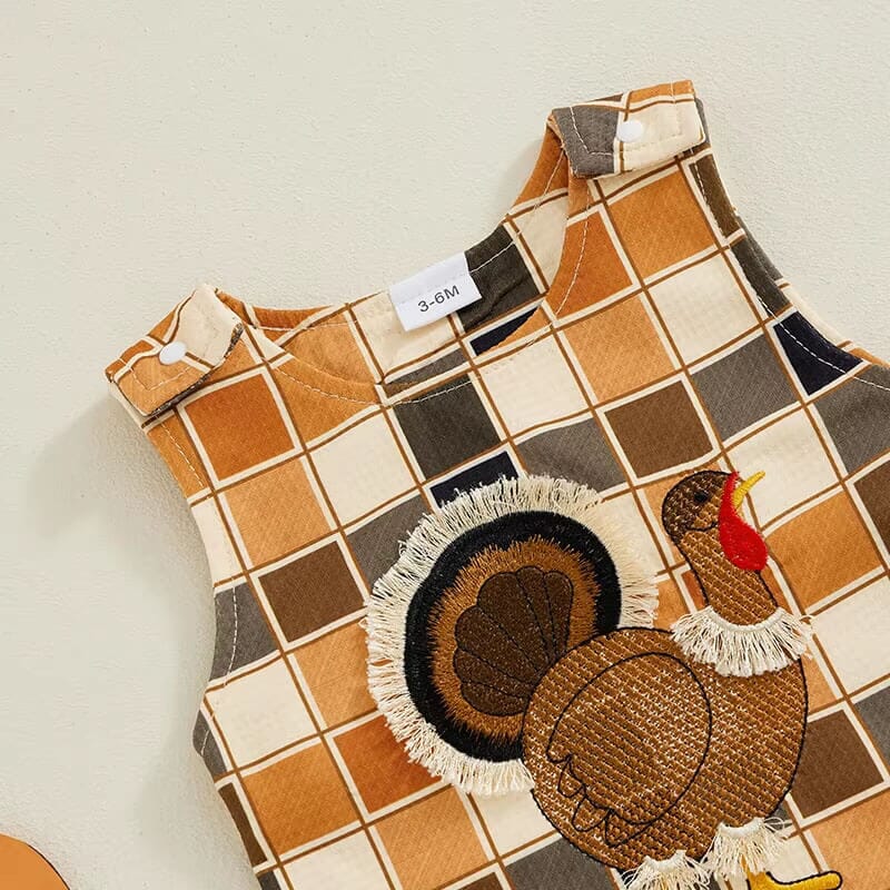 Dress your little one in seasonal style with this festive unisex baby jumpsuit, ideal for celebrating Thanksgiving. Featuring a delightful turkey appliqué on a stylish checkered pattern, this jumpsuit captures the spirit of the holiday with a touch of whimsy. This charming outfit is not only perfect for Thanksgiving Day but also makes a great choice for autumn family gatherings and photo opportunities.